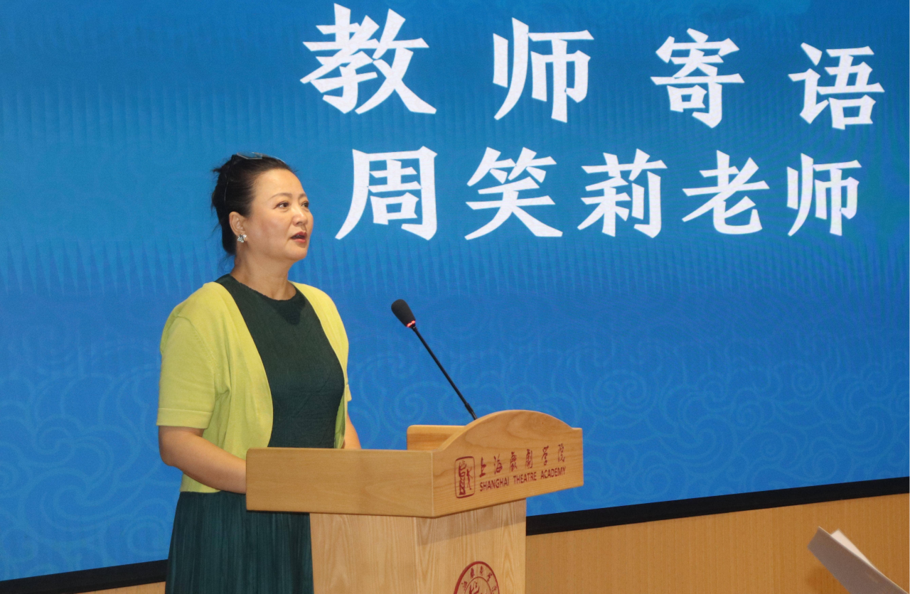 研究生导师周笑莉教授作为教师代表,向新生们发表了题为《让艺术服务于人》的寄语。她指出,在科技飞速发展的时代,AI可以计算数据,却无法复刻人性,而这正是戏剧不可替代的价值。戏剧如同一面镜子,通过具象的叙事,让个体看见困境的普遍性与共通性,勾连起公共情感。她勉励所有新生都成为一个“有心人”,去观察、感受和思考,因为“空心的人是学不了戏剧的”,充满烟火气的生命体验正是创作的源泉与动力。她希望戏文系的学子们不仅是掌握戏剧技能的从业者,更能成为用戏剧推动人类精神成长的践行者,让艺术真正服务于人的生活。