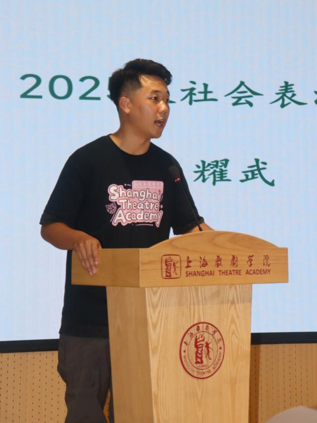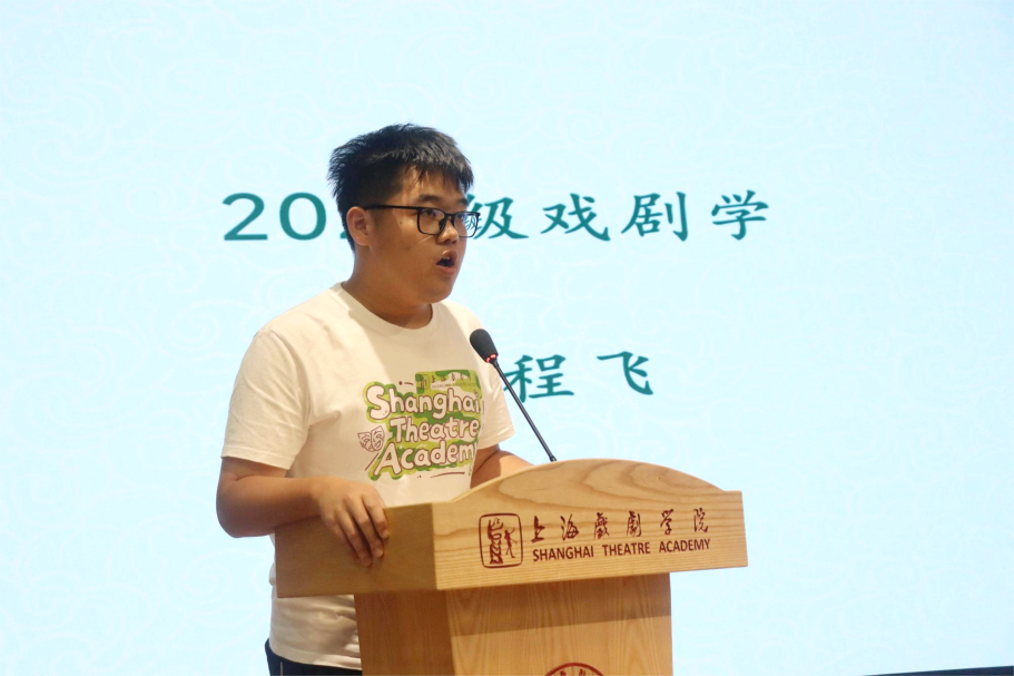 本科生彭程飞、硕士生王耀武、博士生薛法森三位新生代表依次上台发言,分享了他们与戏剧结缘的心路历程和对未来的展望。