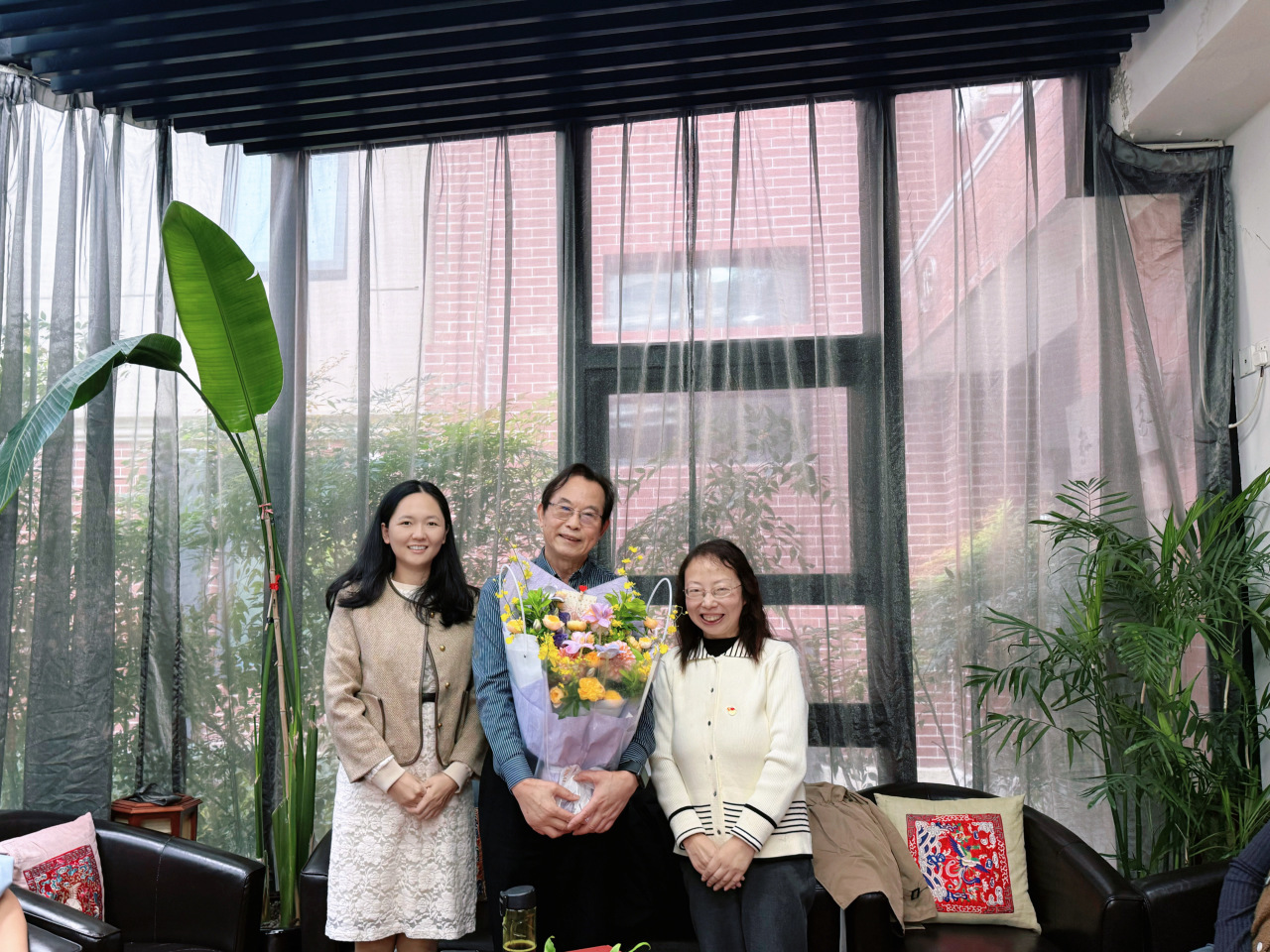 戏文系教师党支部书记李冉,代表全系党员教师向陆老师送上了重阳节的祝福。