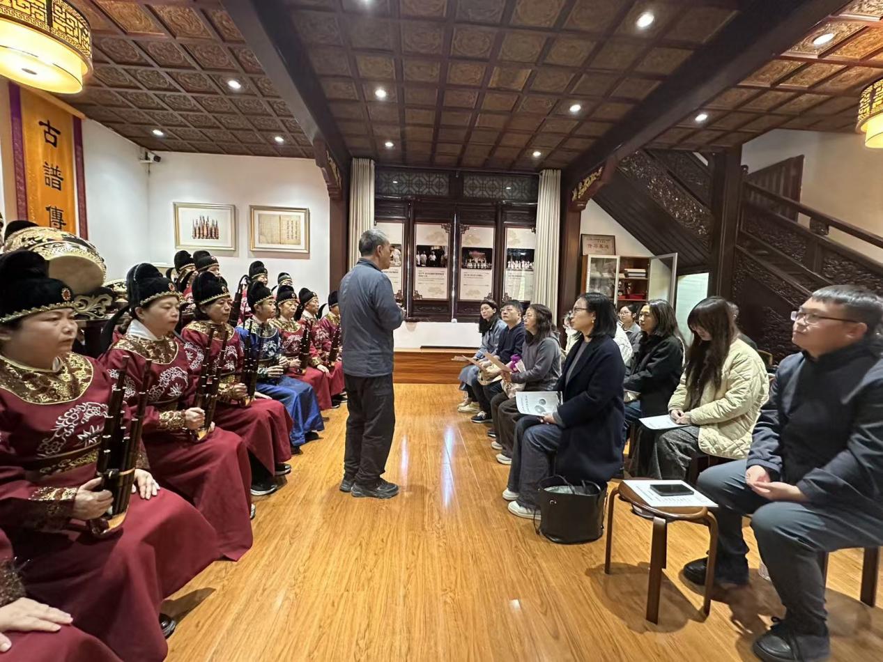 此外,上戏师生还欣赏了人类非物质文化遗产项目——西安鼓乐的现场演奏,向团队负责人了解了西安鼓乐的历史演变、演出管理、人才培养等方面的情况。西安鼓乐社在继承、传播鼓乐上做出了很多令人钦佩的工作,形成了自己独到的运营方式,为非物质文化遗产的保护提供了重要的思路。
