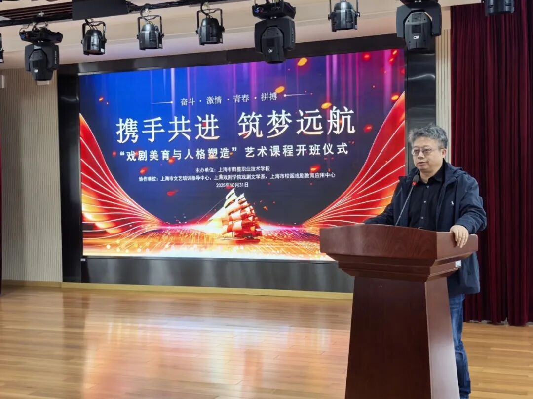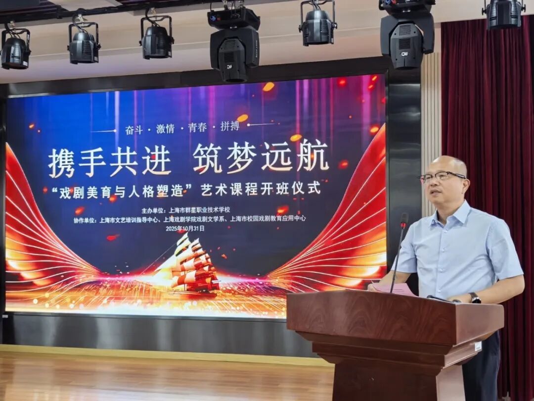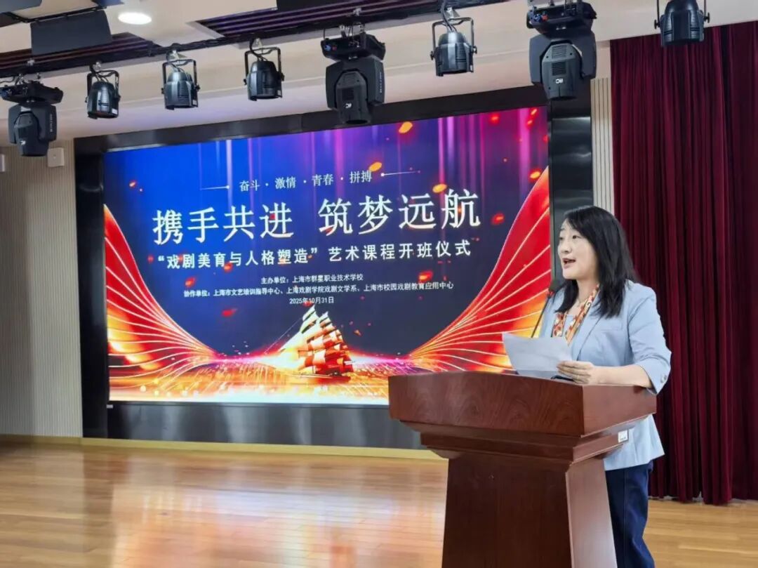 近期,上海市群星职业技术学校电化教室内满是暖意。随着 “戏剧美育与人格塑造” 艺术课程开班仪式的顺利举行,群星职校携手顶尖艺术力量--上海戏剧学院,共同开启 “以艺育美、以美塑人” 全新育人实践的新篇章。
