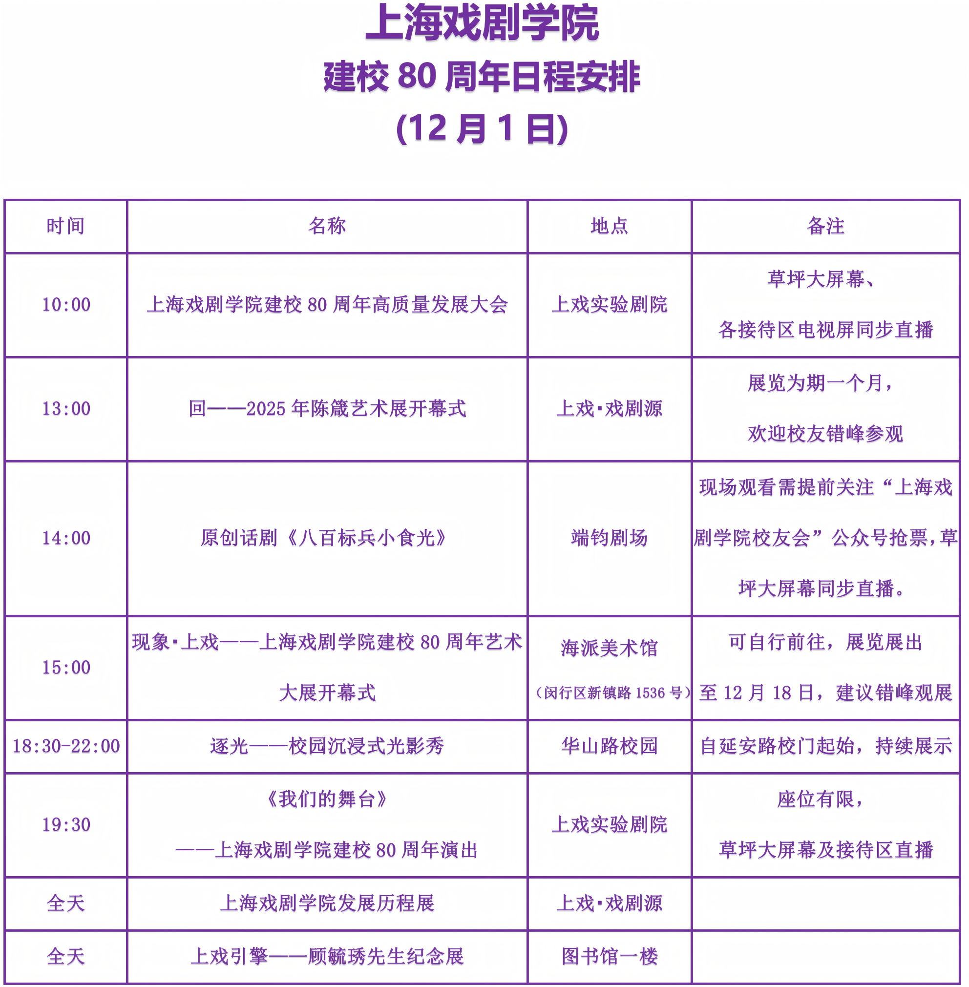 我们的母校上海戏剧学院,将在2025年12月1日迎来80华诞。