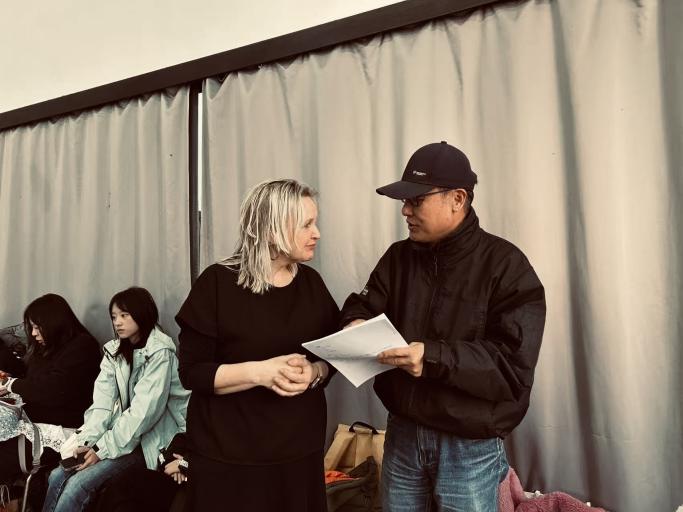 随后,大家分成了若干小组。两位老师鼓励大家用不同的方式去进入福瑟的文本中。大家细致地感受文字之间的每一个停顿、换行,去讨论当中有什么能够引起你的兴趣。参与者亲身体验了福瑟笔下那些简单对话下汹涌的情感暗流,以及沉默所承载的巨大戏剧能量。随后,Katrine老师邀请大家展示小组表演片段,并真挚地说:“每一组的表演都是非常有价值的。”