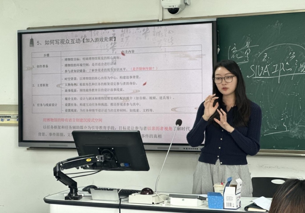 授课期间,吴韩娴副教授重点介绍了如何将戏剧编剧技巧迁移至游戏创作领域,并梳理了游戏编剧在创作思维与方法上的独特之处。程宇月博士则以国内外经典案例为基础,系统梳理了博物馆戏剧的多元呈现方式及针对博物馆这一特殊场域的创作策略,同时详细介绍了工作坊实操的完整流程。程宇月博士后续还将带领大家实地参观上海电影博物馆,进一步深化课堂所学。
